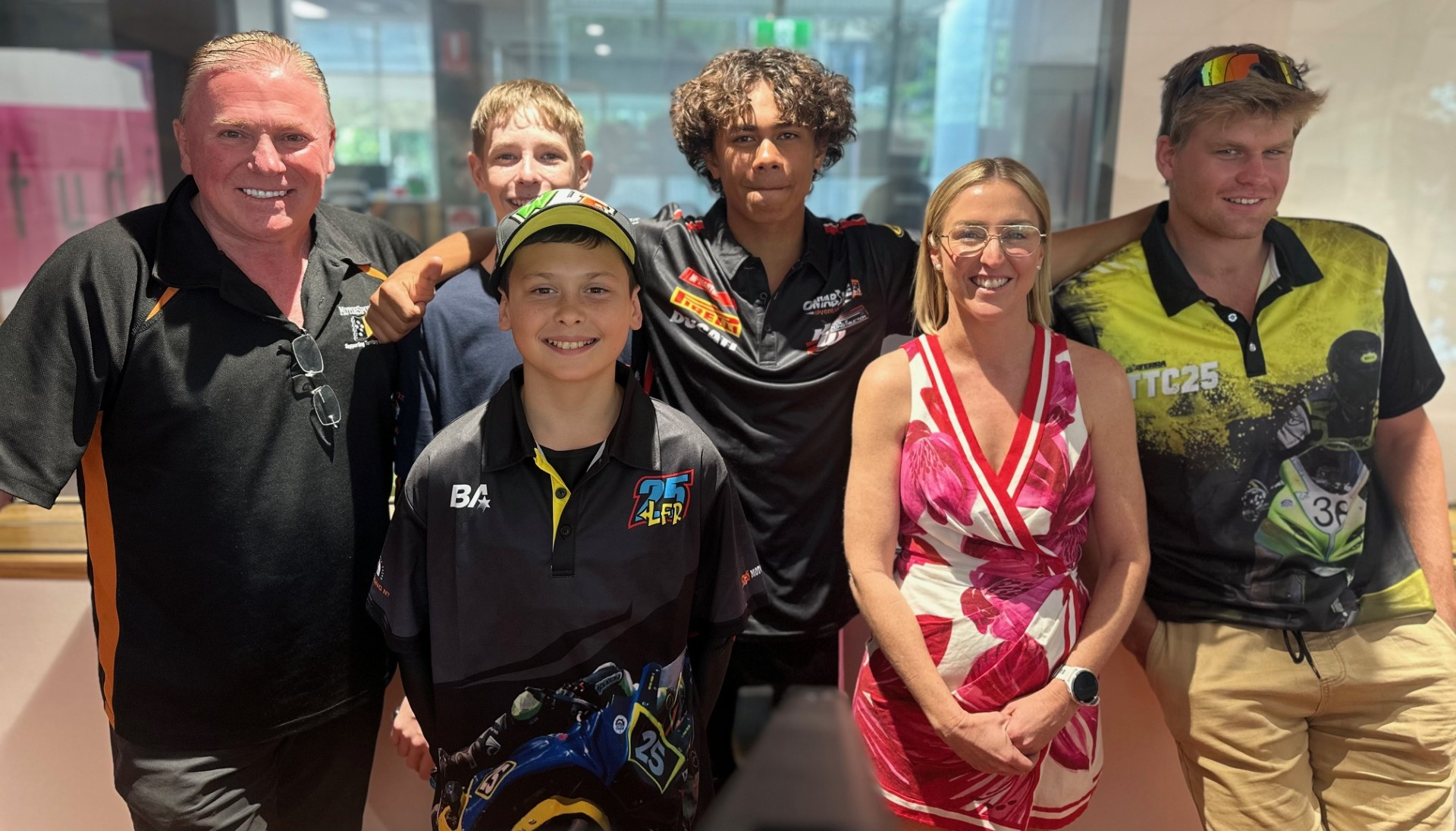 Motorsports NT CEO Tony Seivers, Coach Luke McDonald and junior riders Liam Fookes, Lachey Williams and Owen Todd are taking part in the NT’s national superbike event which is underway at the Hidden Valley Raceway until August 3