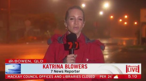 7 News reporter Katrina Blowers with an update on Cyclone Debbie.