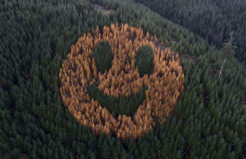 ESS: This smiley face of trees greets drivers in Oregon every fall