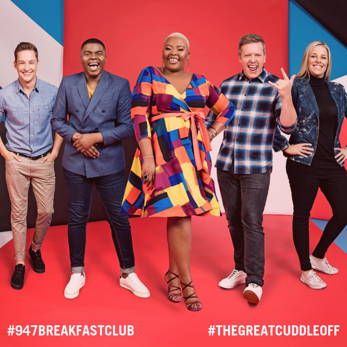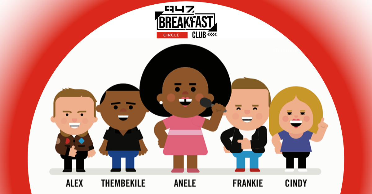 The 947 Breakfast Club, the best way to wake up! Anele, Frankie, Thembekile, Alex and Cindy driving the city to work!