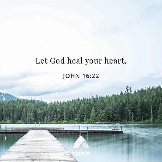 Wherever you are today, this biblical meditation, narrated by Bonnie Curry, offers a quiet space to pause and reconnect with God. Let God heal your hurting heart. Meditate on John 16:22. Abide is a Christian meditation app that helps you experience peace and grow in your relationship with Christ …