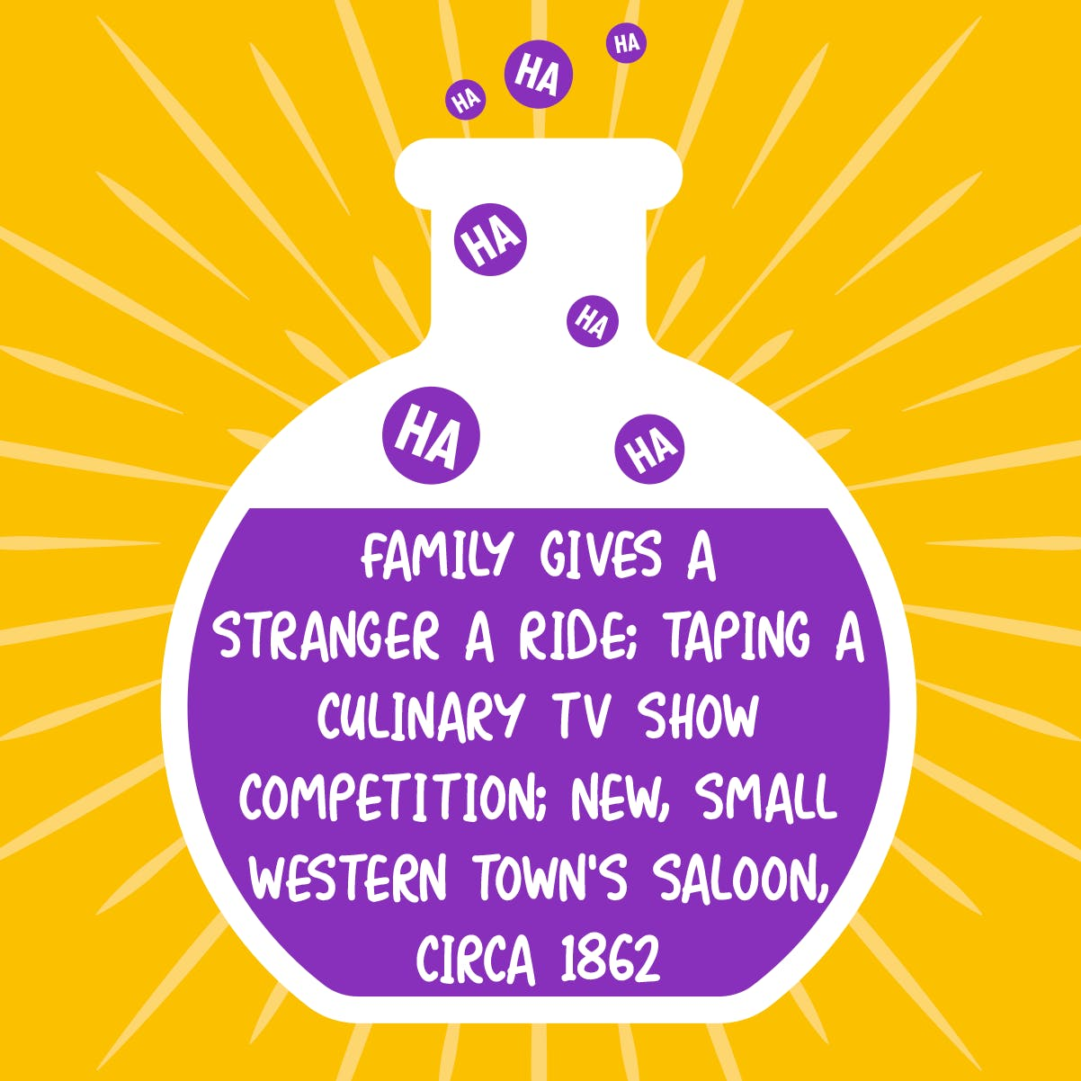 Family Gives a Stranger a Ride; Taping a Culinary TV Show Competition; New, Small Western Town's Saloon, Circa 1862