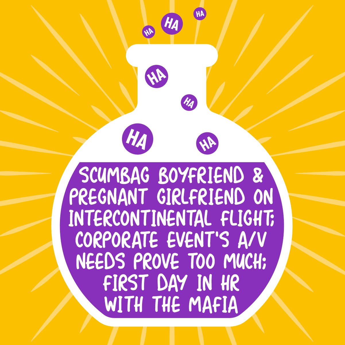 Scumbag Boyfriend and Pregnant Girlfriend on Intercontinental Flight; Corporate Event's A/V Needs Prove Too Much; First Day in HR with the Mafia