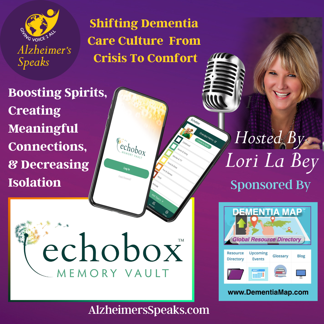 Echobox Memory Vault - Continuity of Care through Quality of Life Lori La Bey talks with Tim and Tannis Roberts, the cofounders of Echo Box, who observed something profound and couldn't let it go. They witnessed something special and knew in their hearts it had to be expanded to help so many o…