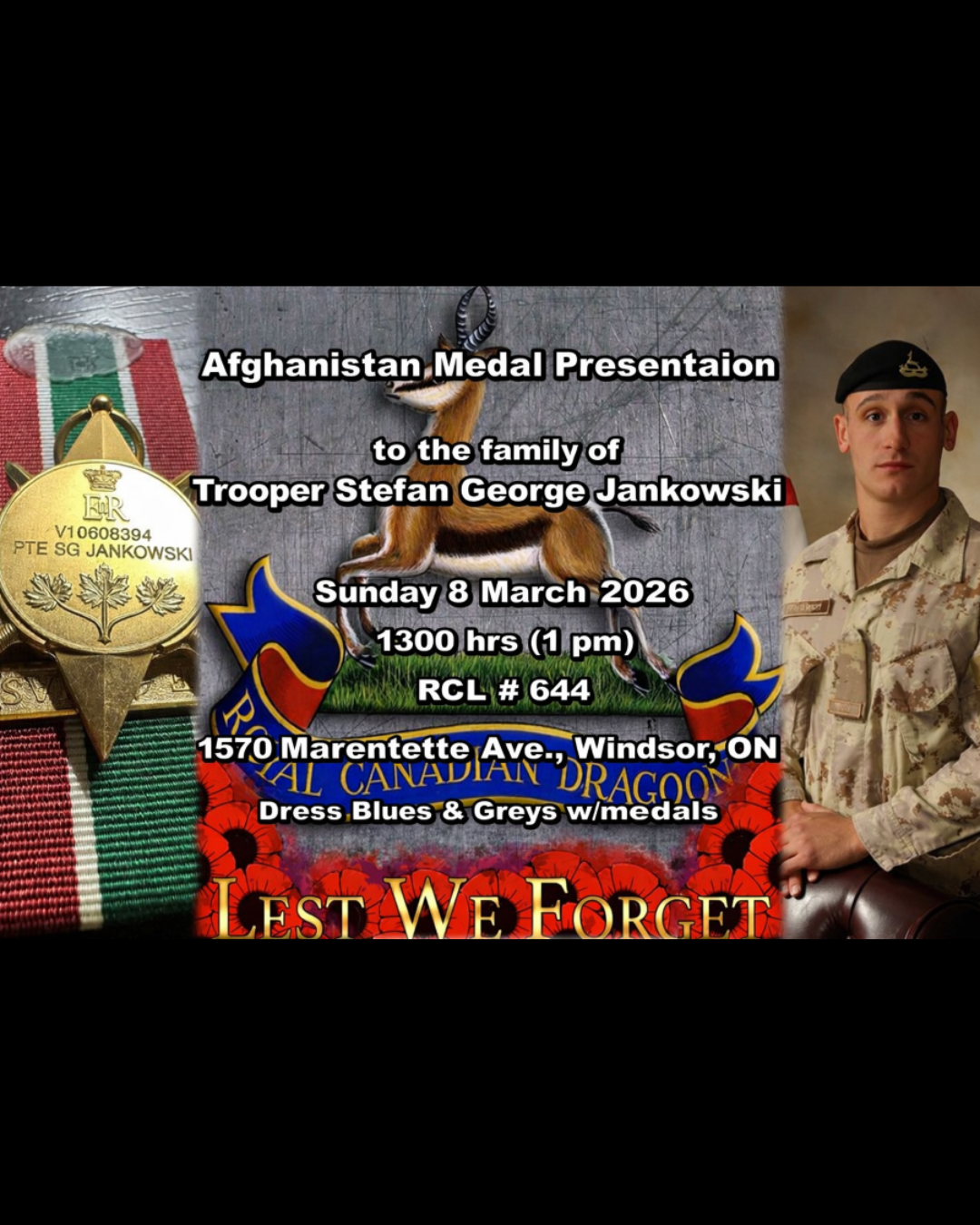 Lost medal to be returned to family of Windsor Afghanistan veteran
