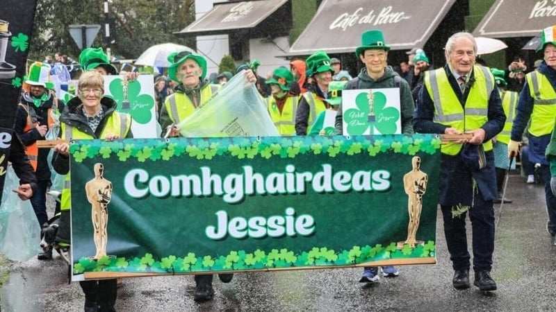 Iar-Mhéara Chill Áirne chun tosaigh i bParáid Lá Fhéile Pádraig inné ag ceiliúradh éacht Jessie Buckley ag na Oscars.