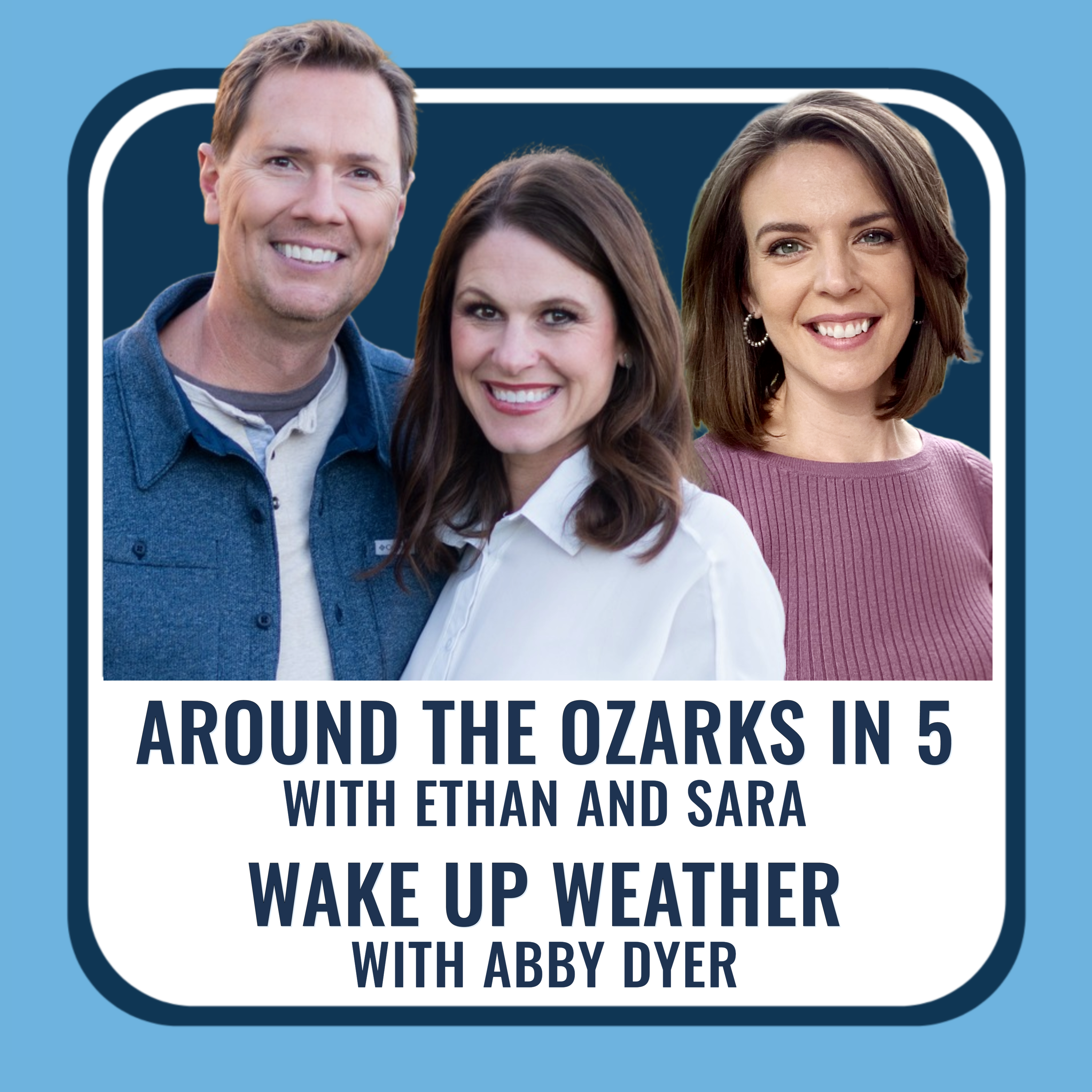 Start your morning with Around The Ozarks! Listen to Around The Ozarks in 5 and Around The Ozarks Wake Up Weather every weekday morning for a great way to start the day. Around The Ozark in 5 is a weekday update from Ethan and Sara Forhetz. Ethan and Sara share what hyper-local events and non-profit opportunities are coming up Around The Ozarks, as well as keep you up to date with local weather, local groups making a difference, and share heartwarming stories about upstanding people who live Around the Ozarks. Around The Ozarks Wake Up Weather is a weekday weather podcast from meteorologist Abby Dyer. Abby will share the daily forecast every weekday morning at 5 a.m. Wake Up Weather is for anyone, from a weather enthusiast to someone who wants a quick forecast while getting ready for work. Also, every weekday after the forecast, Abby will have a trivia question called the Brain Twister!