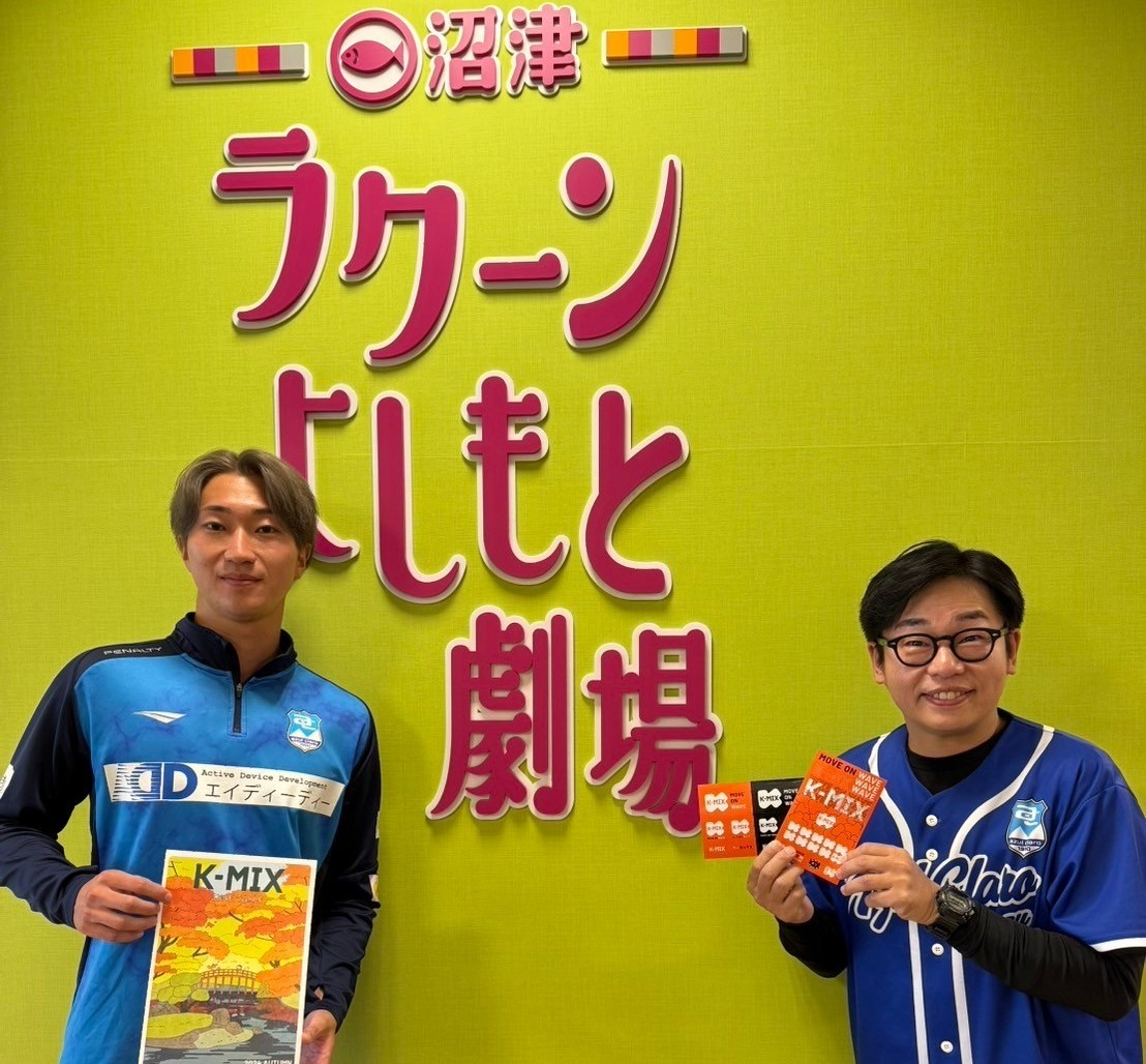 K-MIXでついに「アスルクラロ沼津」応援番組が放送!アスルクラロ沼津の情報はもちろん、選手・スタッフ出演でアスルクラロ沼津の魅力に迫っていく5分間! 悲願のJ2昇格に向けて、選手・サポーター・そしてあなたと!ラジオを通じて共に闘いましょう!