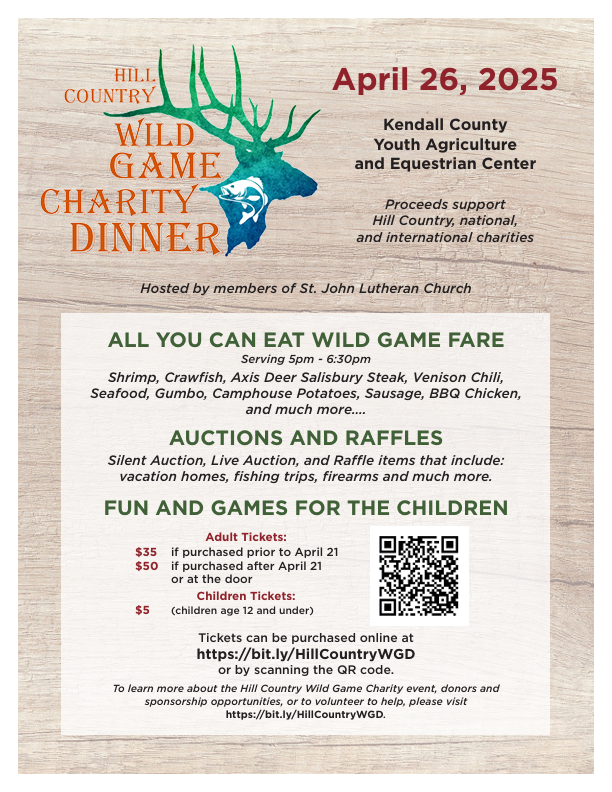 Boost Boerne Business - St John's Lutheran Church Wild Game Dinner April-4-2026