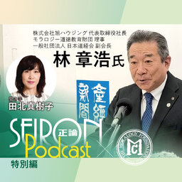 正論ポッドキャスト特別編は、政治・経済・社会・国際情勢から文化まで、幅広い分野のスペシャリストをお招きして、様々な問題を鋭く論じる対談番組です。今回のお相手は、「株式会社 旭ハウジング」代表取締役社長で、モラロジー道徳教育財団・理事、一般社団法人・日本道経会・副会長の林章浩(はやし・あきひろ)さんです。『「三方よし」の経営』をテーマに語っていただきました。
