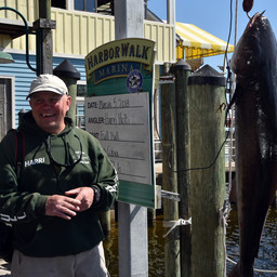 Angler Harri Hotti of Finland along with Capt. Chris Wagner of the Full Pull chat with The Destin Log's Tina Harbuck about landing the first cobia of the season to kickoff the Destin Cobia Tournament at HarborWalk Marina. The cobia weighed 72.6 pounds.