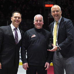 Edmonton Oil Kings Off-Ice Officials Supervisor Rob McCrea was honoured prior to the March 7 game against Medicine Hat with the WHL Distinguished Service Award. Mat Barrett and Guy Flaming chat with him about the award and his 31+ years of service to this point.