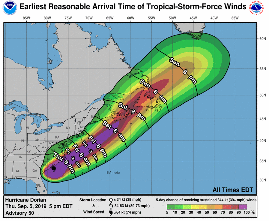 5 PM ADVISORY - THURSDAY - HURRICANE DORIAN