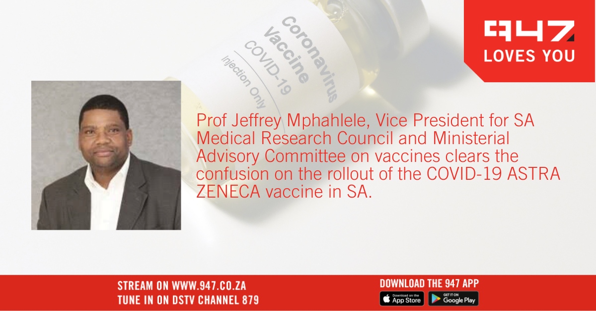 Prof Jeffrey Mphahlele, Vice President for SA Medical Research Council and Ministerial Advisory Committee on vaccines clears the confusion on the rollout of the COVID-19 vaccines in SA.