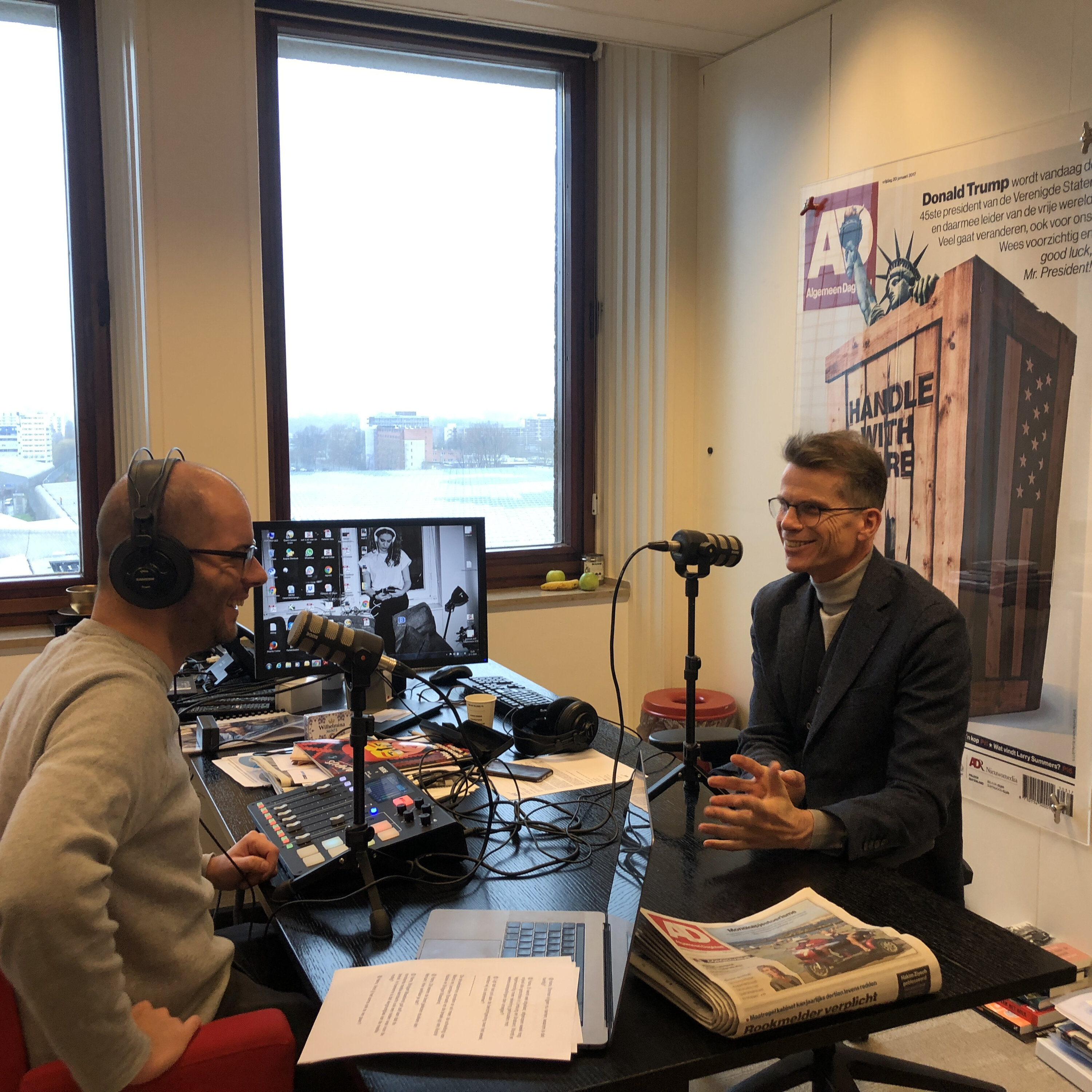Vanuit het kantoor van hoofdredacteur Hans Nijenhuis van het AD bespreken hij en presentator Kevin G
