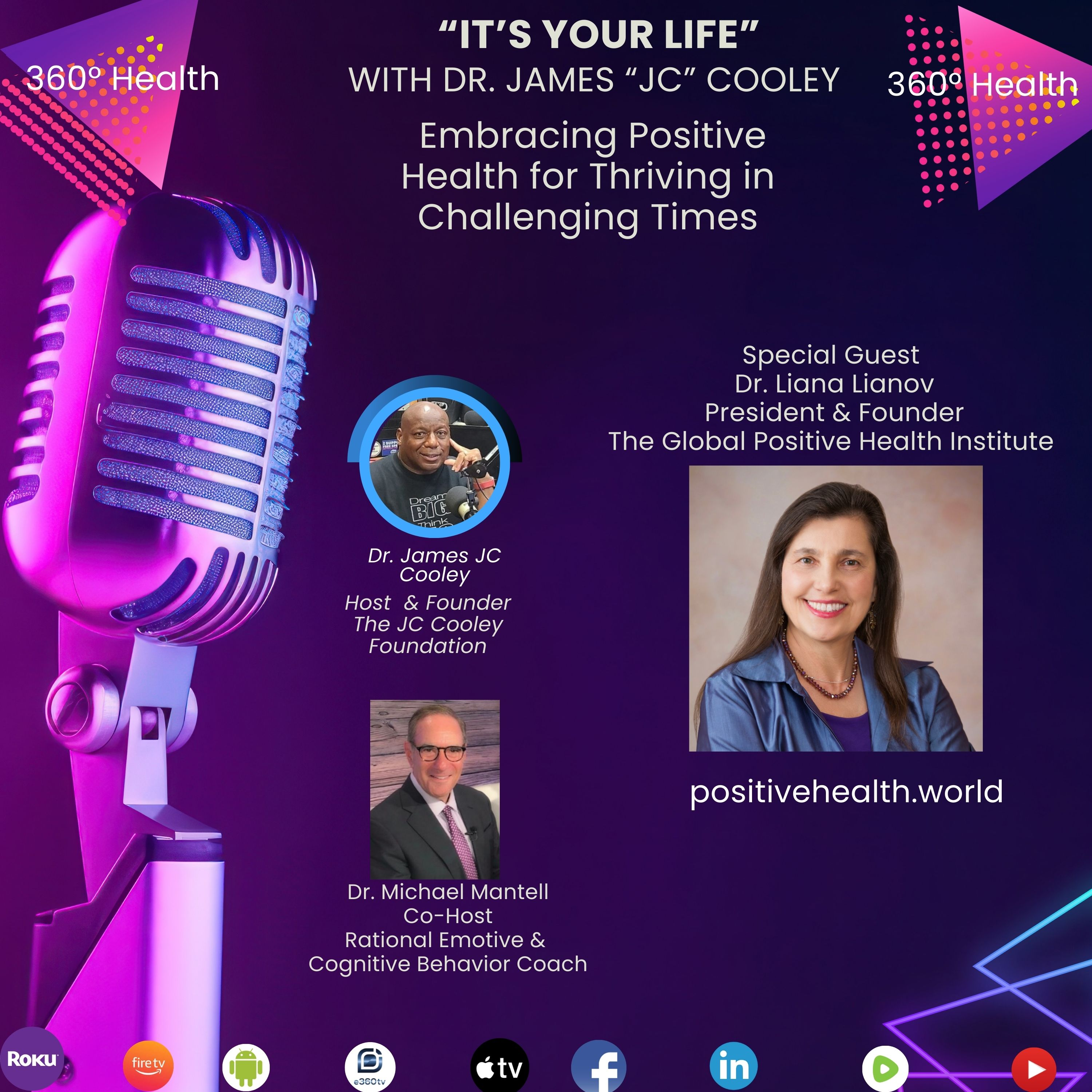 Show Highlights It’s Your Life with Dr James JC Cooley and Co-Host Dr Michael Mantell- Rational Emotive & Cognitive Behavior Coach have a sit-down conversation Dr. Liana Lianov - President and Founder of The Global Positive Health Institute and Assistant Professor at the Center for Positive Health …