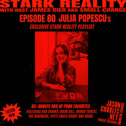 For Episode 80 of STARK REALITY PLAYLISTS, guest JULIA POPESCU serves up a properly noisy and raw playlist of punk favorites, featuring Bad Brains, Fugazi, Bikini Kill, The Warmers, Patti Smith Group and much more. Multi-disciplinary artist JULIA POPESCU shows under Snakes for Hair, her Tarot and …