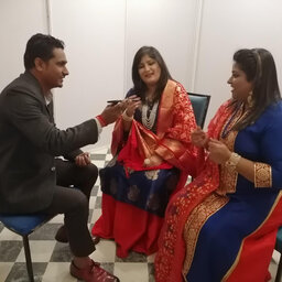 RJ Ravindra with Roohani Sisters. JLF 2019. Jaipur Music Stage