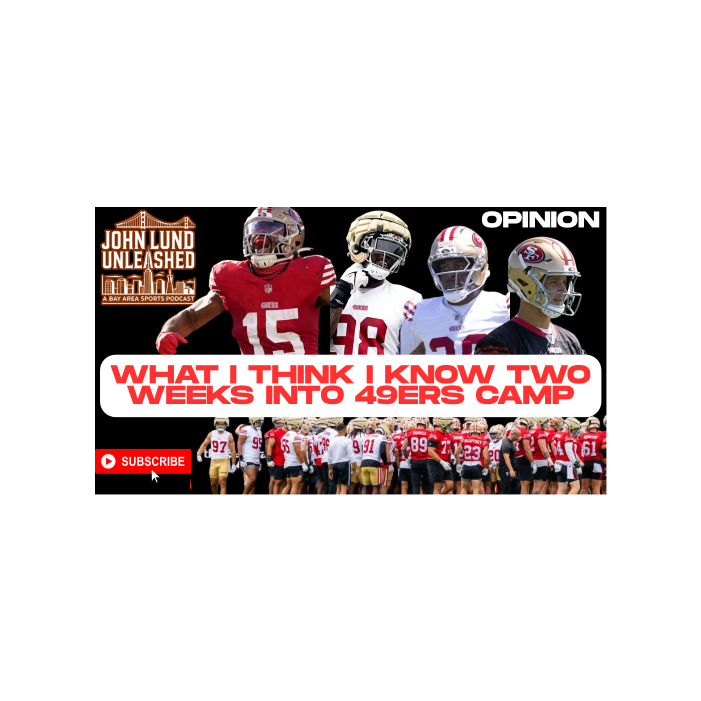 https://www.youtube.com/@JohnLundUnleashed Reminder to visit JohnLundUnleashed.com. Title: John Lund Unleashed: Day 1 Training Camp Insights Description: Join John Lund as he dives into the latest updates from Day 1 of the 49ers training camp. From wide receiver dynamics to defensive line prospectsโฆ