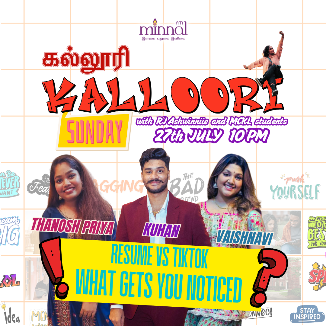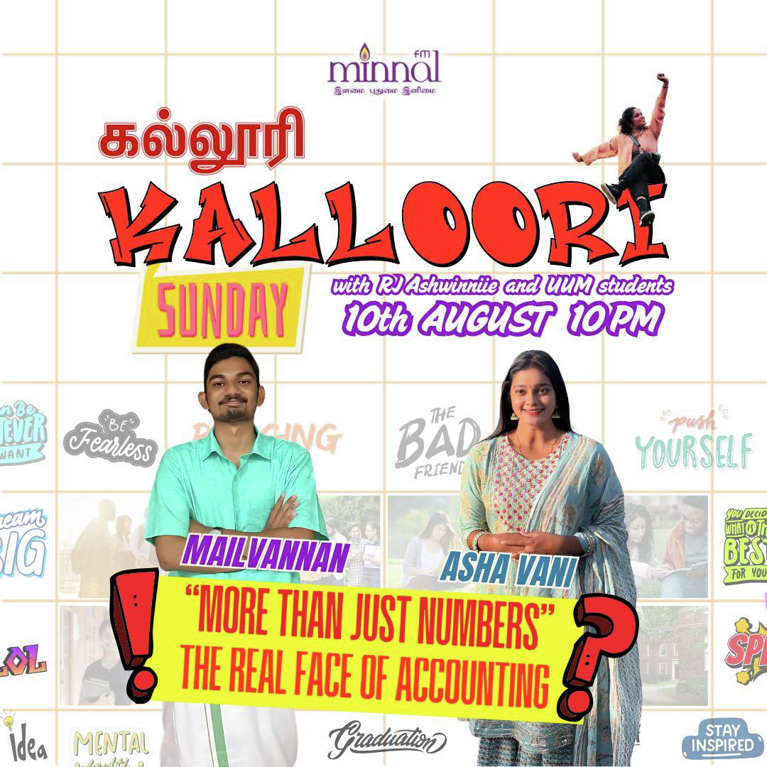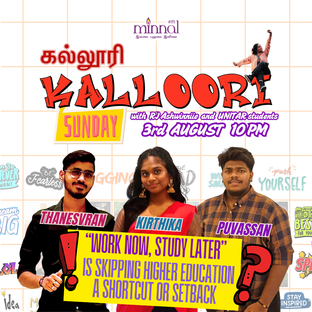 → Is skipping higher education a shortcut or setback? Catch these inspiring UNITAR students – as they share their dreams, challenges & achievements on KALLOORI Hosted by RJ Ashwinniie, only on Minnal FM 3rd August (Sunday) 10PM Don’t miss it – where ambition meets action!#KallooriWithAshwinniie#MinnalFM#Teacher#UPSI#YouthPower#BeFearless#StayInspired#TamilRadioVibes#RJAshwinniie #Tamilshool#UM#stagedrama#supportlokal#unitar