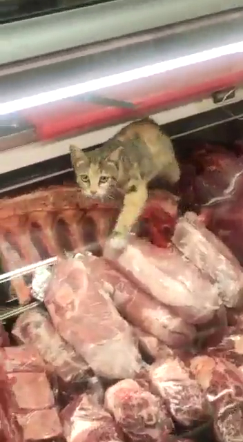"הלכתי לעשות קניות - פתאום קלטתי חתול מסתובב בין הבשרים"
