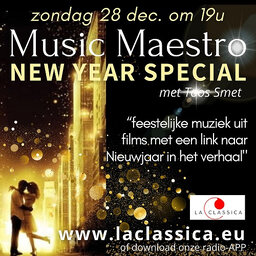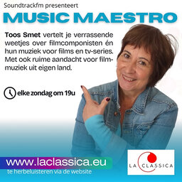 Markante verhalen en weetjes bij binnen- en buitenlandse filmmuziek. Toos Smet zoekt het voor je uit in Music Maestro. Presentatie : Toos Smet Productie : Michel Stuer www.laclassica.eu / www.soundtrackfm.eu
