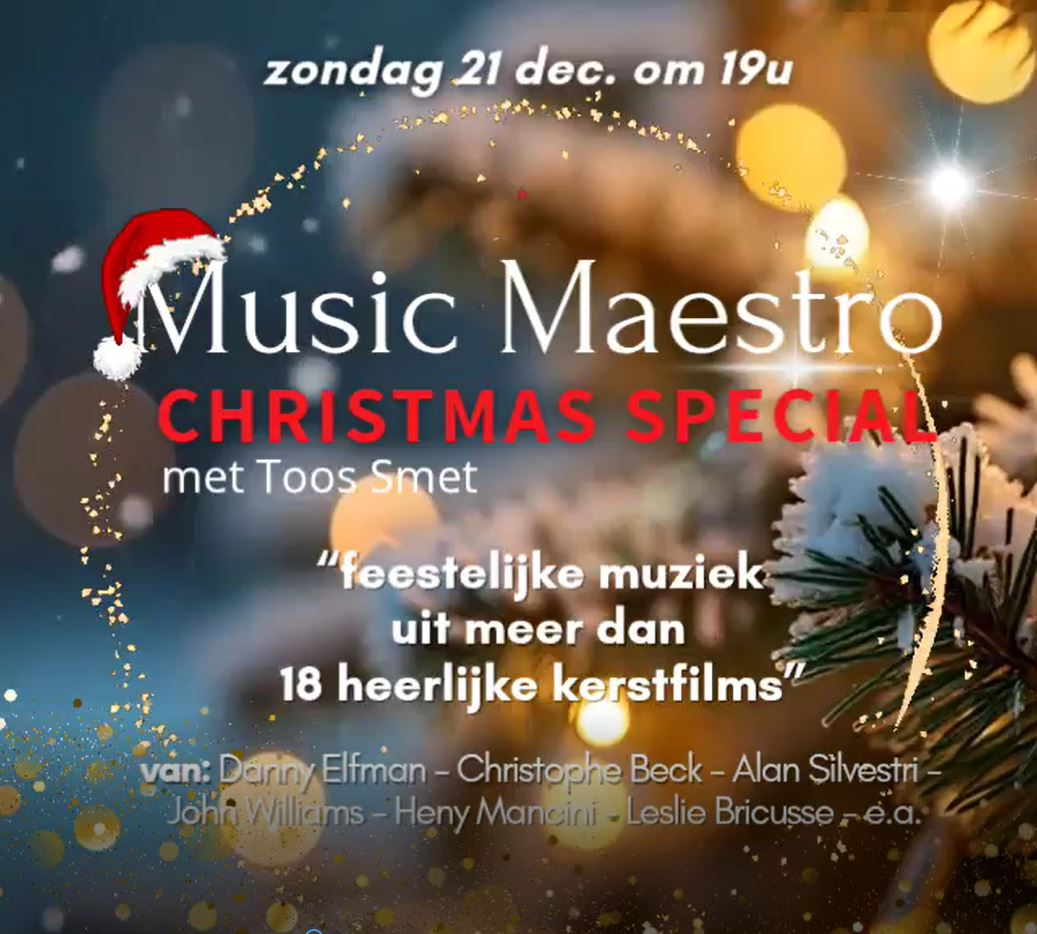 De mooiste tijd van het jaar verdient een Music Maestro met enkel passende muziek. Toos maakt het feestelijk met composities uit meer dan 18 heerlijke kerstfilms. Presentatie : Toos Smet Productie : Michel Stuer www.laclassica.eu / www.soundtrackfm.eu