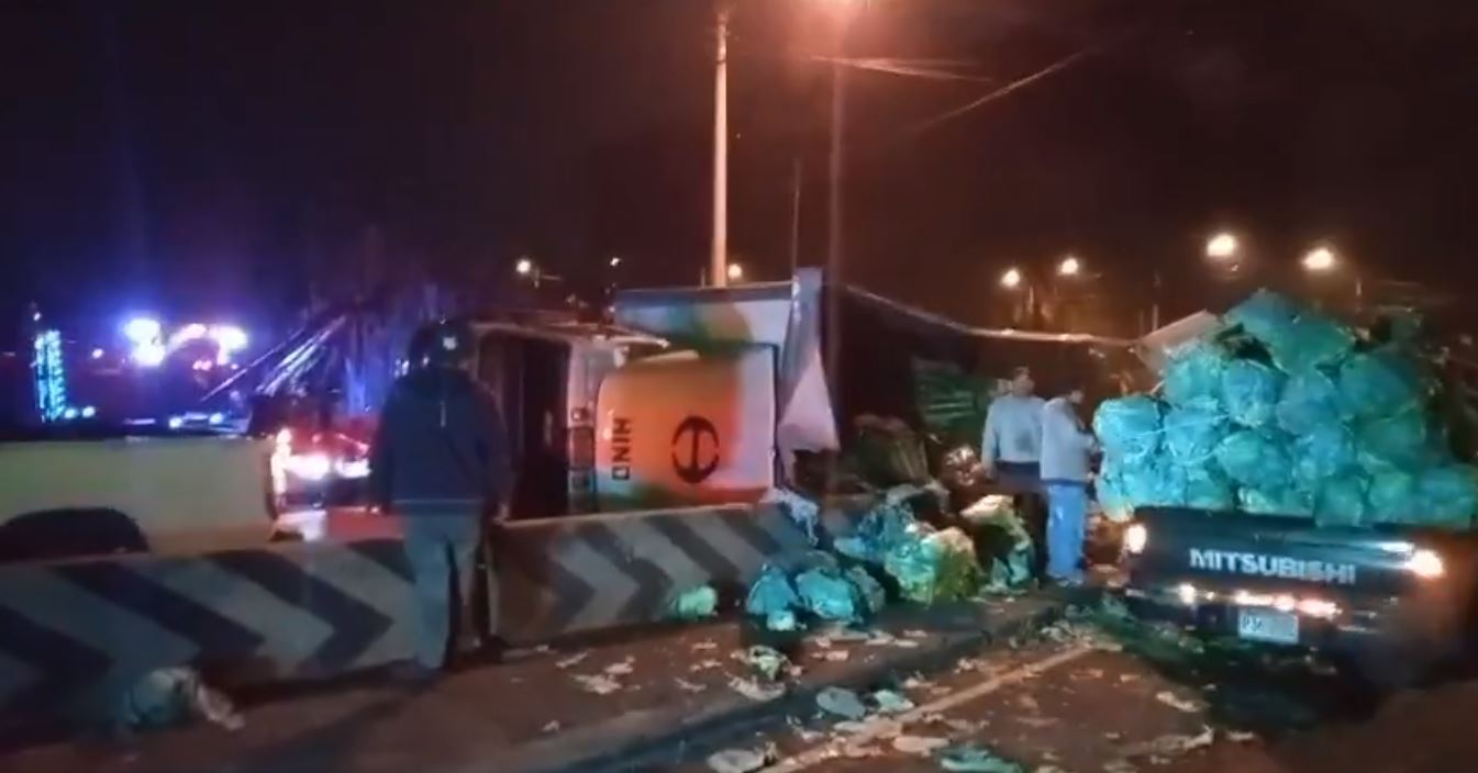 Camión vuelca en salida de San Cristóbal, Mixco