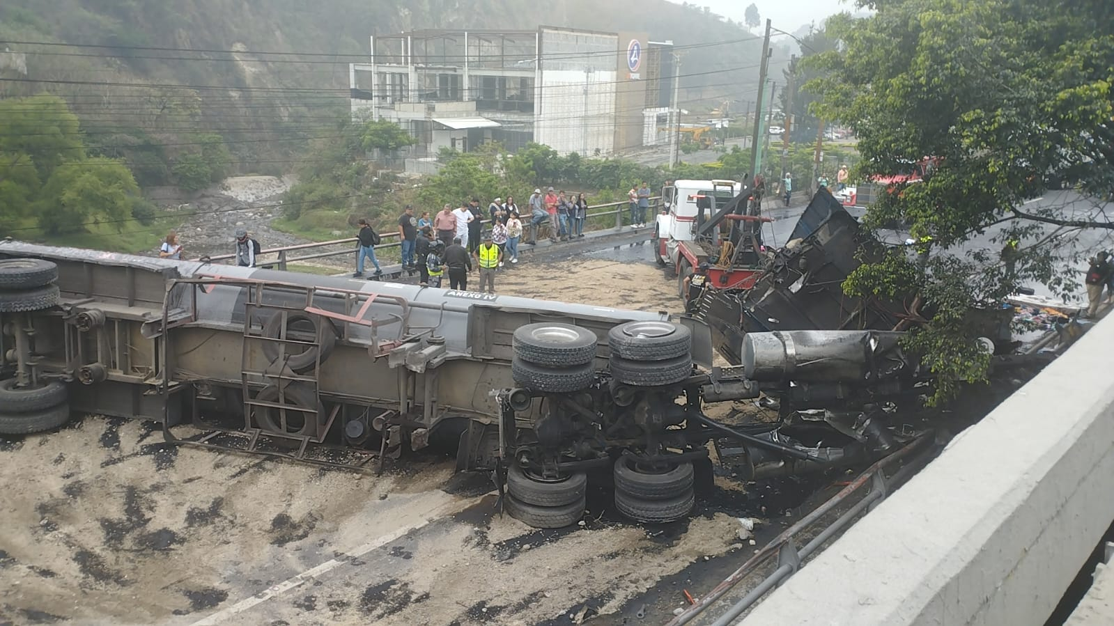 Pipa de combustible vuelca y bloquea tránsito ne Villa Nueva