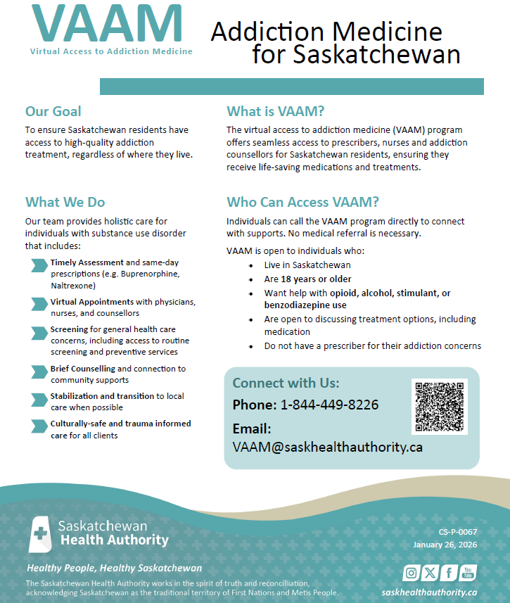 January 27, 2026 MBC News Host: Amber Bear Aired on North at Noon January 28, 2026 Saskatchewan residents now have more options for addictions treatment after the launch of the virtual assistance to addictions medicine (VAAM) program. The launch has started with three communities: Lloydminster…