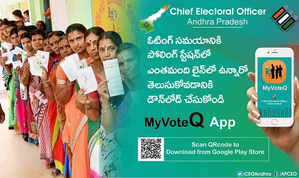 Ippudu #Desam mottham nokkutundi #Button!! #MyVoteQ app download chesukoni..me booth daggara enta qué undo telusukoni velli vote vesi raavochhu!!
