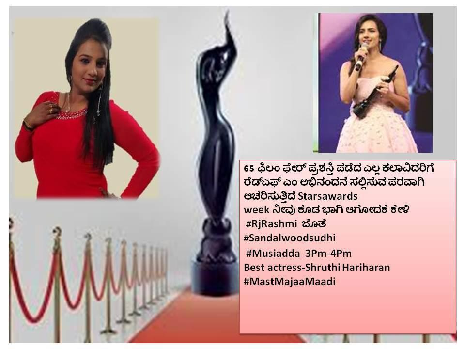 65 ಫಿಲಂ ಫೇರ್ ಪ್ರಶಸ್ತಿ ಪಡೆದ ಎಲ್ಲ ಕಲಾವಿದರಿಗೆ ರೆಡ್ ಎಫ್ ಎಂ ಅಭಿನಂದನೆ ಸಲ್ಲಿಸುವ ಪರವಾಗಿ ಆಚರಿಸುತ್ತಿದೆ Starsawards week ಕೇಳಿ #RjRashmi ಜೊತೆ (2)