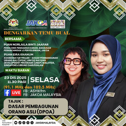 Dengarkan temubual khas Puan Norlaila Binti Jaafar, Penolong Pengarah Kanan, Bahagian Perancangan & Penyelidikan, JAKOA dan Puan Eira Khanum, Koordinator Projek - Dasar Pembangunan Orang Asli (DPOA), United Nations Development Programe (UNDP) Malaysia, Singapore & Brunei Darussalam yang akan berkon…