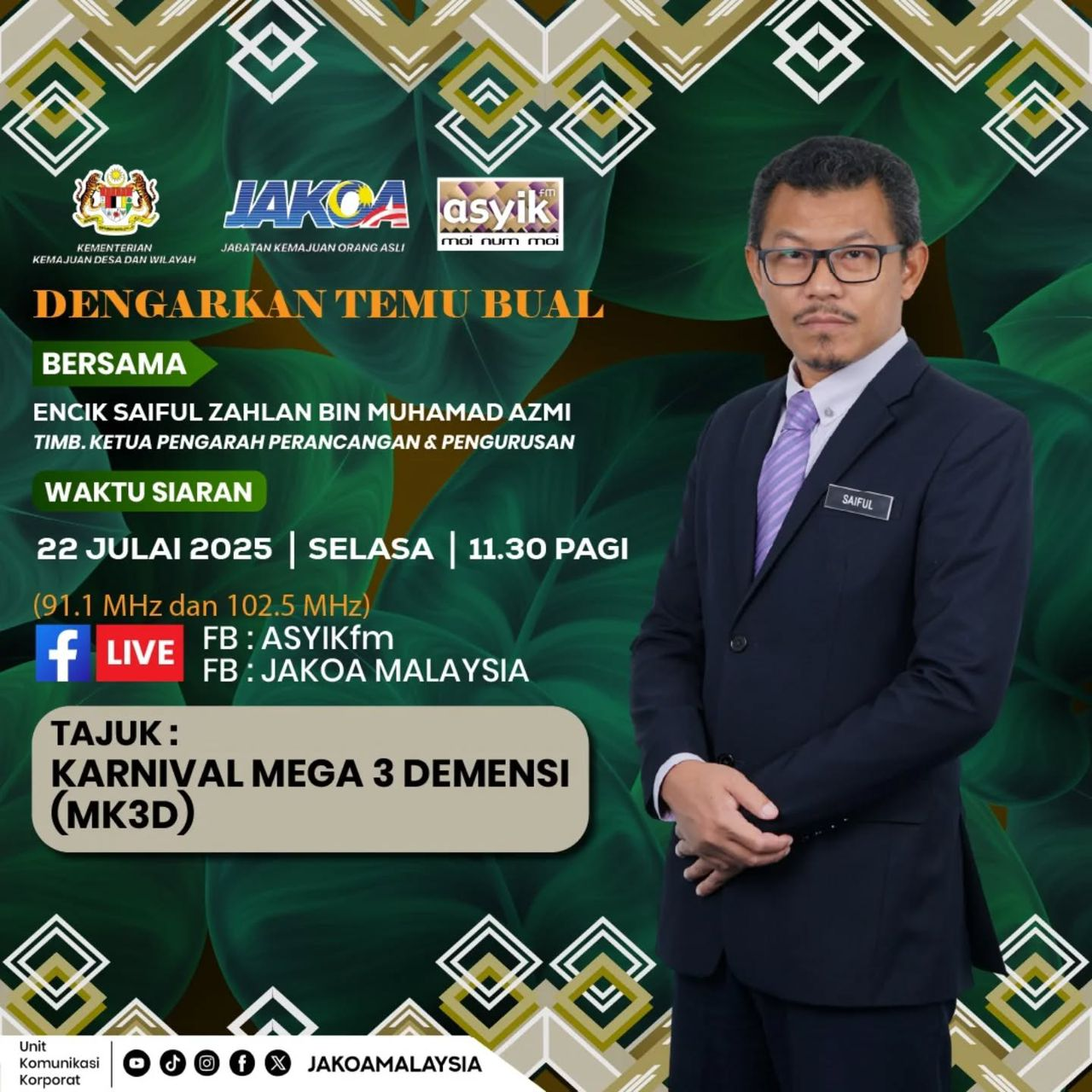 Saksikan juga di Live Facebook ASYIKfm