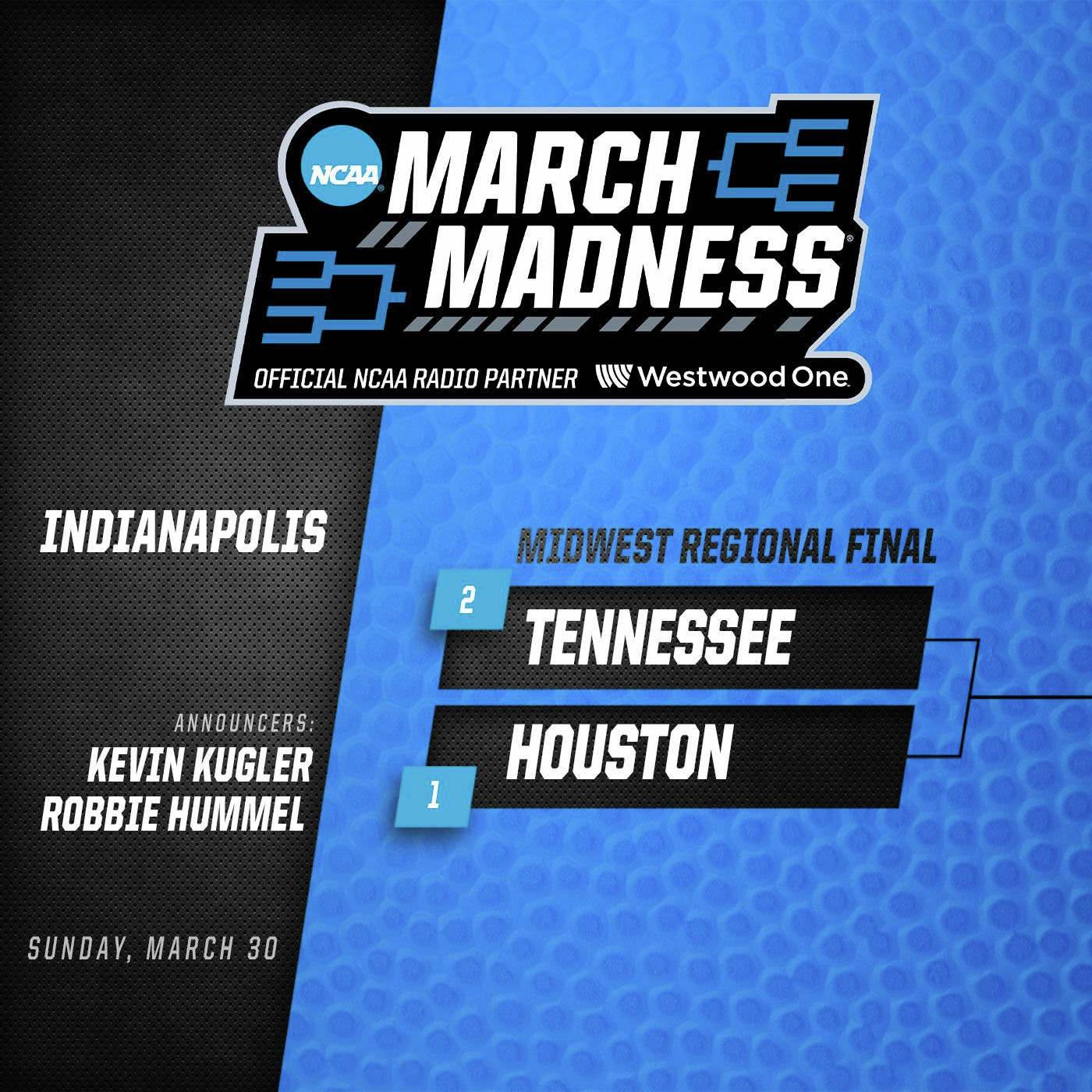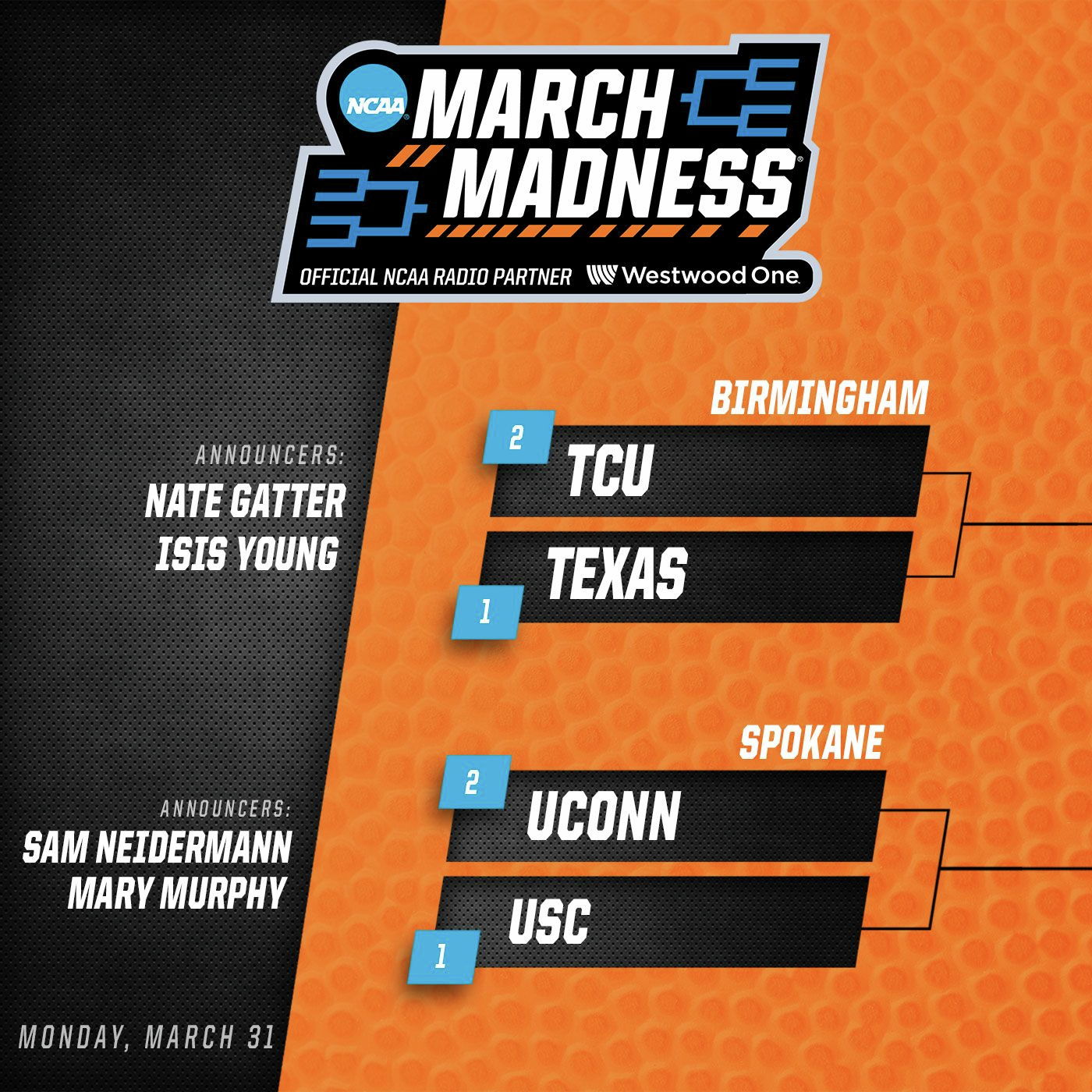 Highlights of NCAA March Madness games on Westwood One.