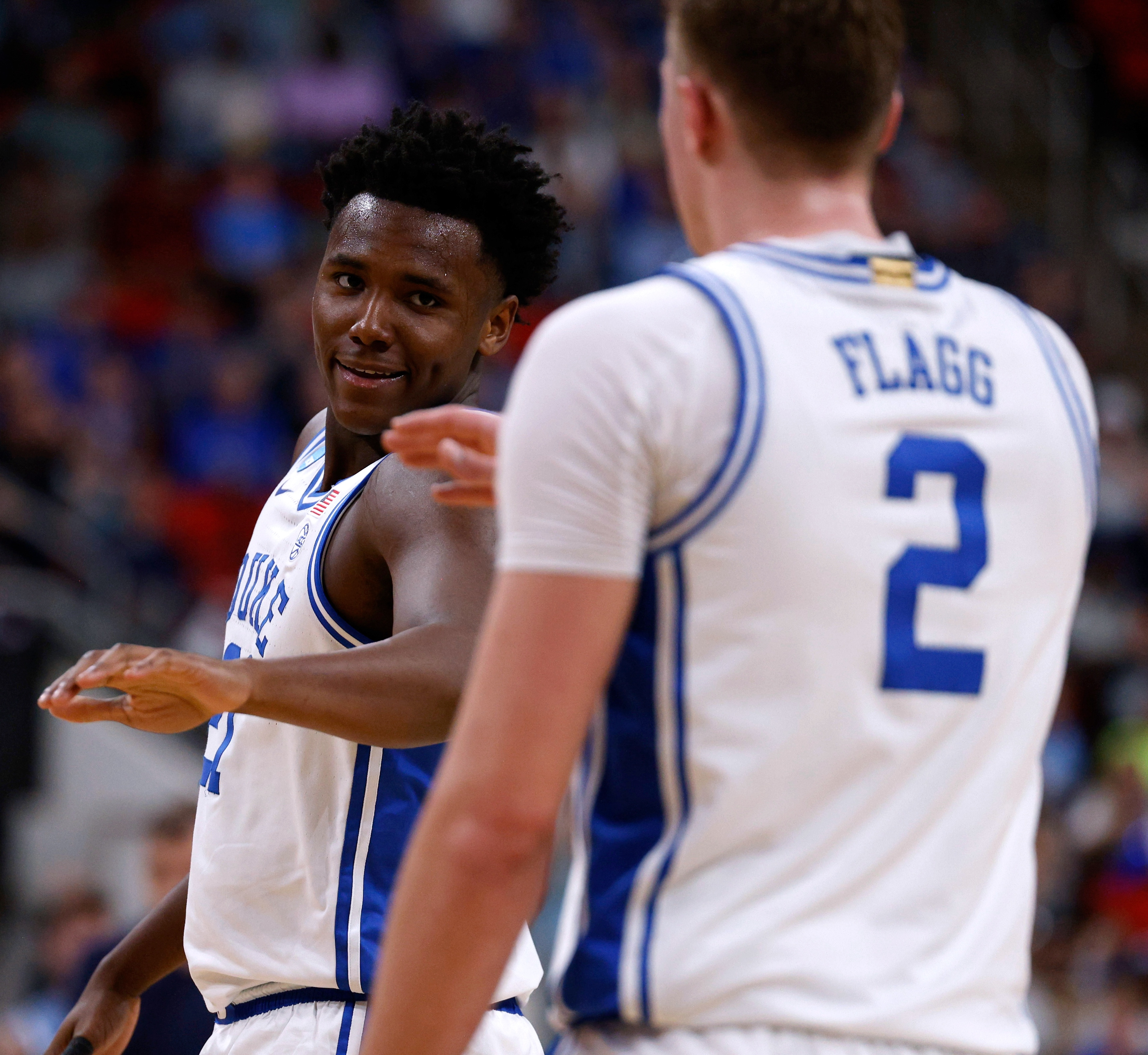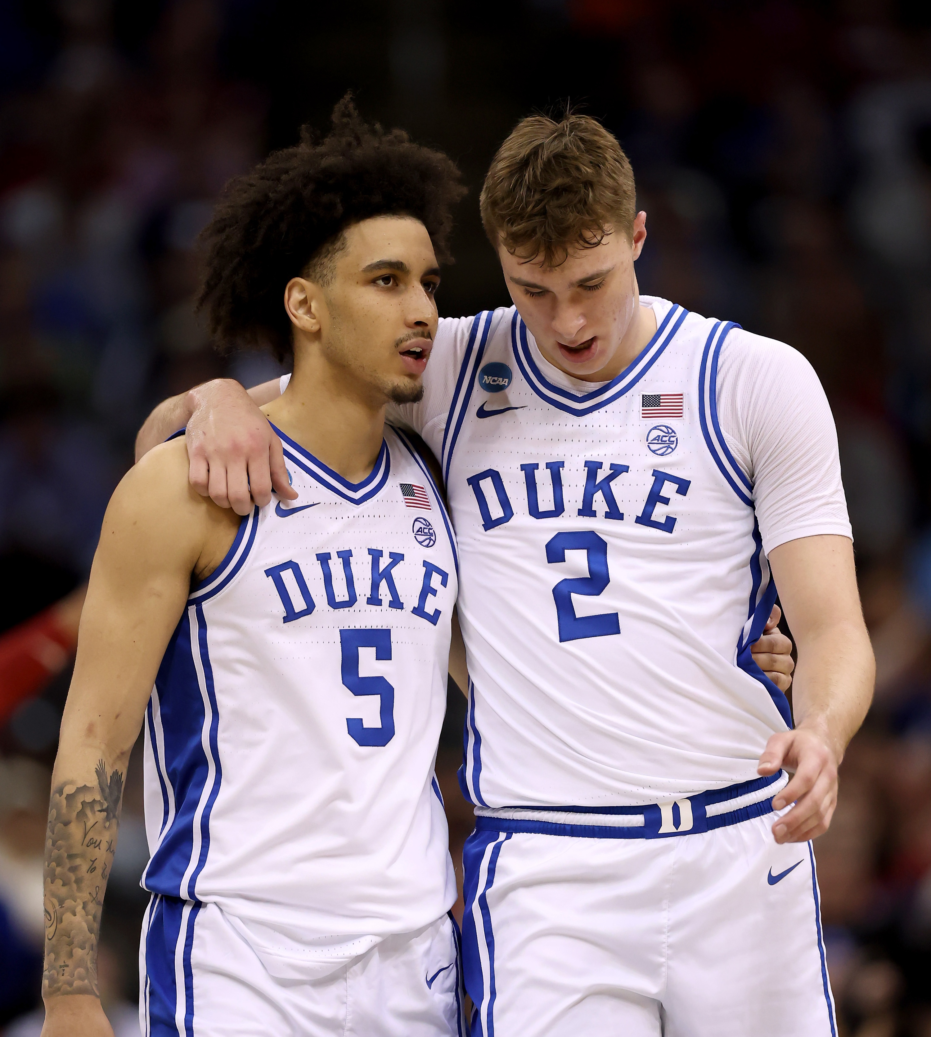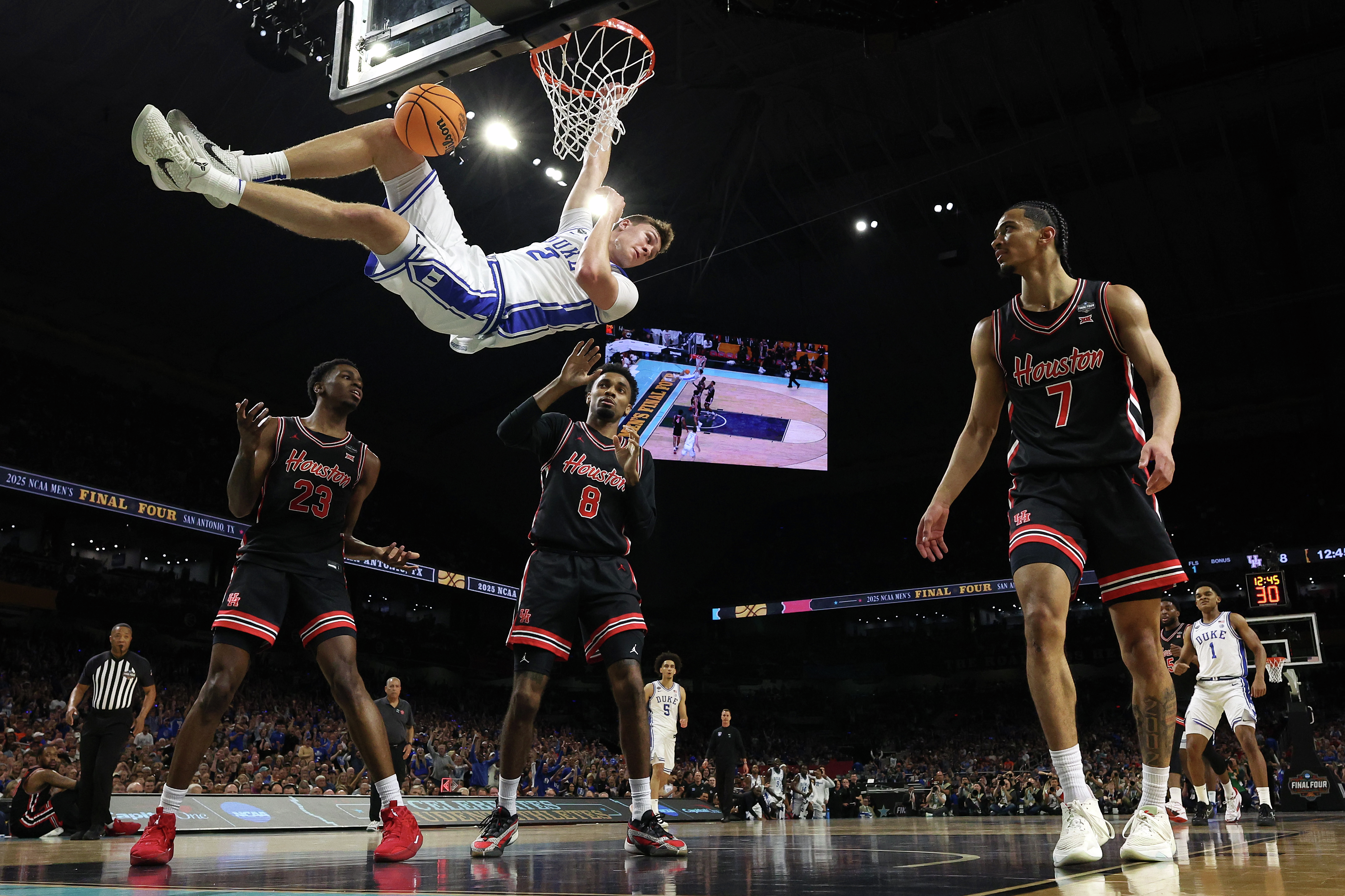 Cooper Flagg of Duke goes coast-to-coast for the jam to give the Blue Devils a 12-8 first half lead.