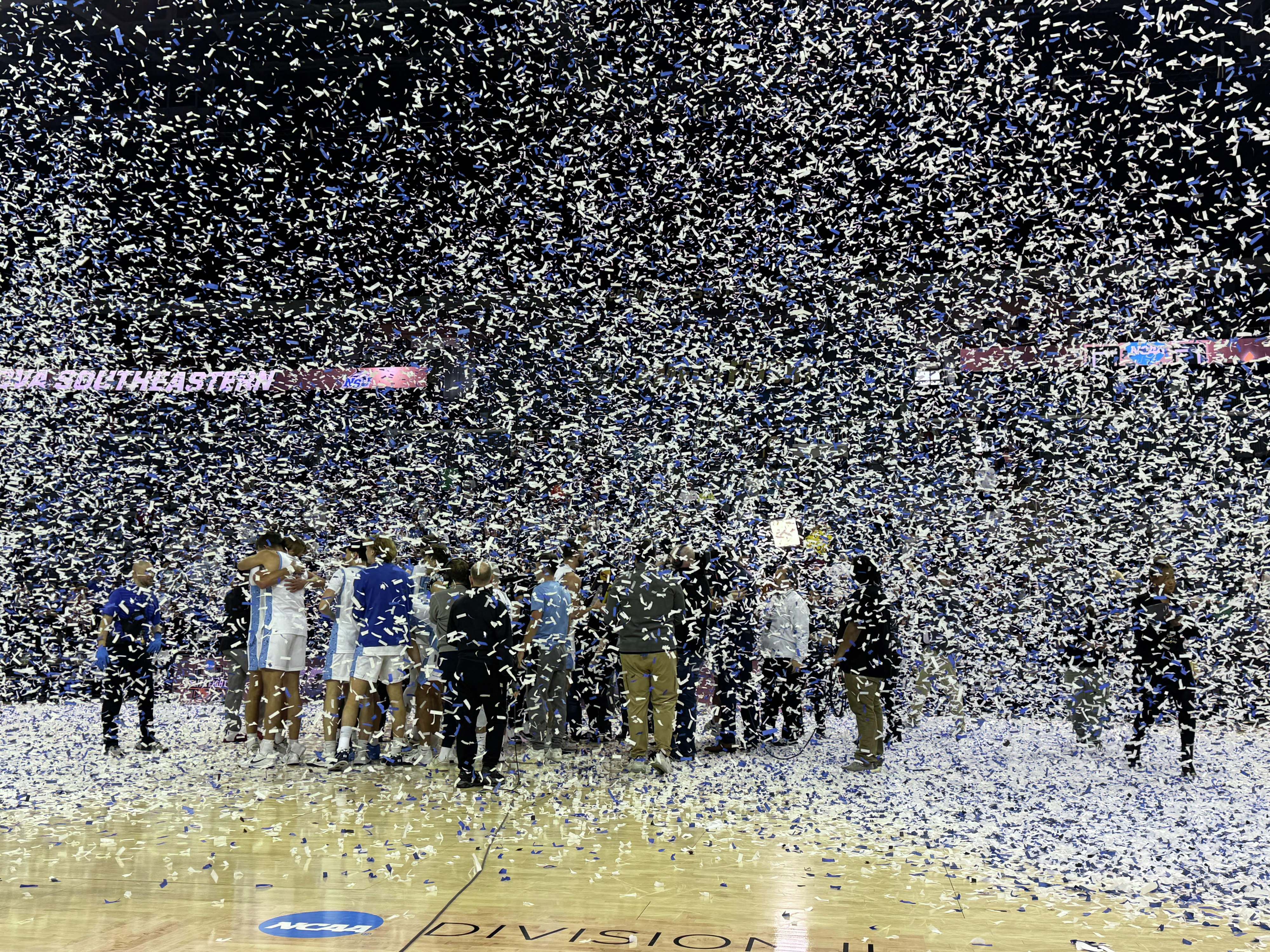 MJ Iraldi's two made free throws to give Nova Southeastern a one point lead and the final jumper is missed by David Cheatom of Cal St. Dominguez Hills.