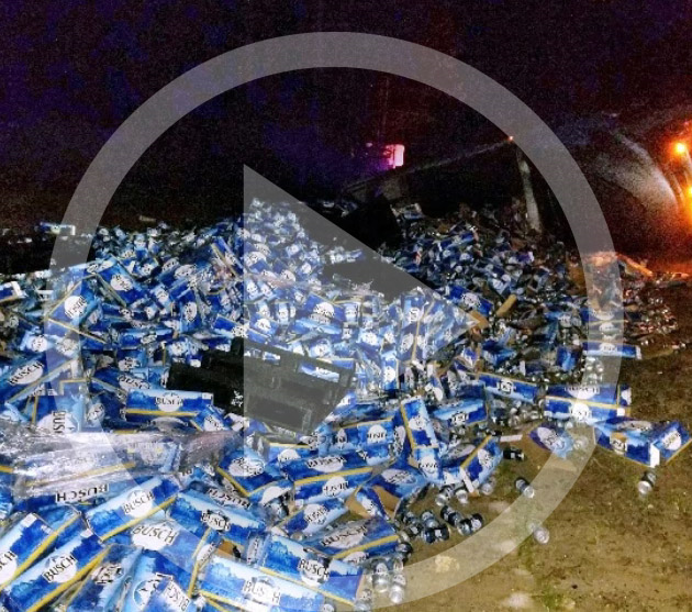 BEER TRUCK OVERTURNS: Semi overturns on I-10 leaving thousands of cans of Busch beer on highway