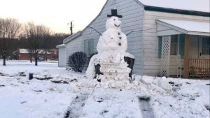 Vandal tries to run over giant snowman, hits tree stump instead...