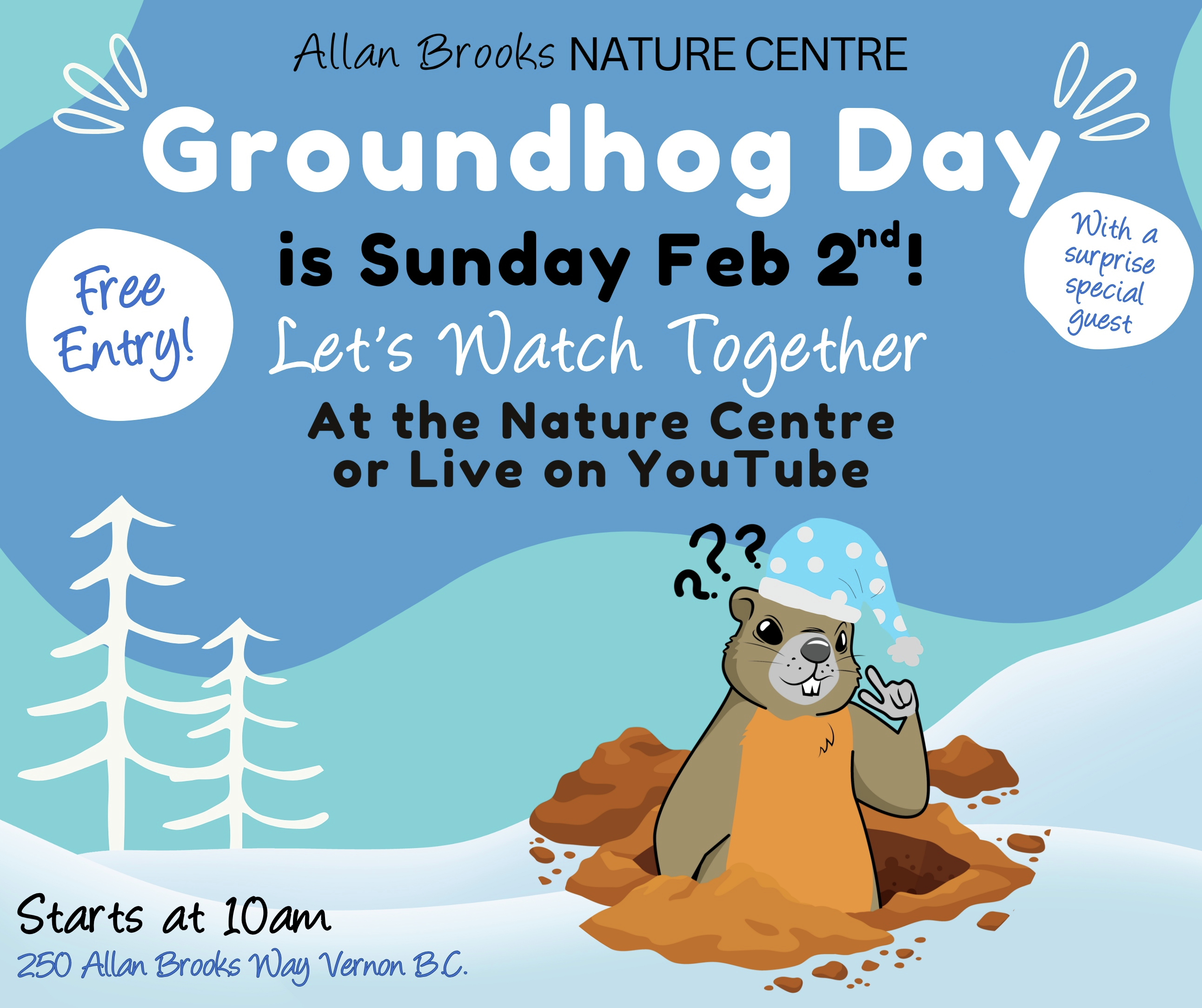 Cheryl Hood from The Allan Brooks Nature Centre joined Turner Gentry to talk about the upcoming Groundhog Day event coming up Sunday February 2nd. This will be a fun event perfect for all ages and featuring Okie The Marmot! Will Okie predict an early spring or more winter? Find out on Sunday!