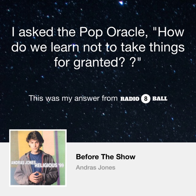 Radio8Ball is a musical divination podcast hosted by ANDRAS JONES. We answer questions (and question answers) by picking songs at random, and interpreting them like musical tarot cards. The questions come from our celebrity guests and the answers are performed by our featured songwriter. Featured guests have included: Viggo Mortensen, Fred Armisen, Jon Auer, Tig Notaro, Mose Allison, Eleni Mandell, Inara George, Allen Toussaint, Susanna Hoffs, John Trudell, Michael Ian Black, John Doe, Exene Cervenka, Dave Alvin, Jimmy Webb and hundreds of others. Radio8Ball has been around since 1998. We started on KAOS 89.3FM in Olympia, Washington and presented a live theatrical version of the show in cities across America between 2005 and 2016. We've been a podcast since 2016. You can download our Radio8Ball app from the iTunes App Store: https://apps.apple.com/us/app/radio8ball/id1326738822 It's filled with every song recorded in the history of the show and is your portal to the realm of The Pop Oracle.