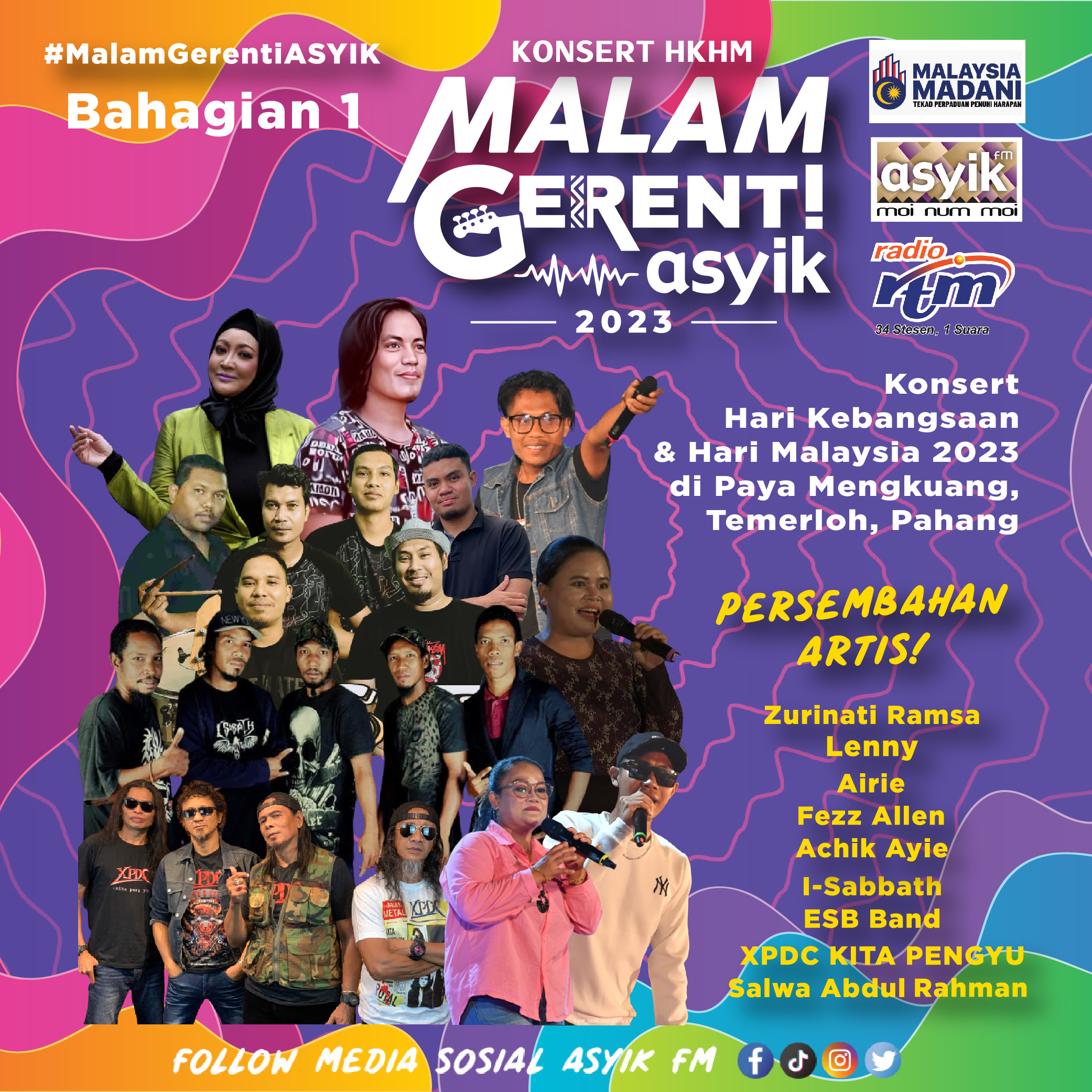 Konsert Hari Kebangsaan & Hari Malaysia 2023 ๐ฒ๐พ MALAM GERENTI ASYIK 2023 9 September 2023 (Sabtu) rakaman bermula 8:30 Malam Bertempat di Kampung Orang Asli Mengkuang, Temerloh, Pahang. ๐จ๐ปโ๐ค๐ง๐ปโ๐ค Menampilkan artis persembahan : XPDC Kita Pengyu (Bahagian 2) (Bahagian 1) Airie Fezz Allen Aโฆ