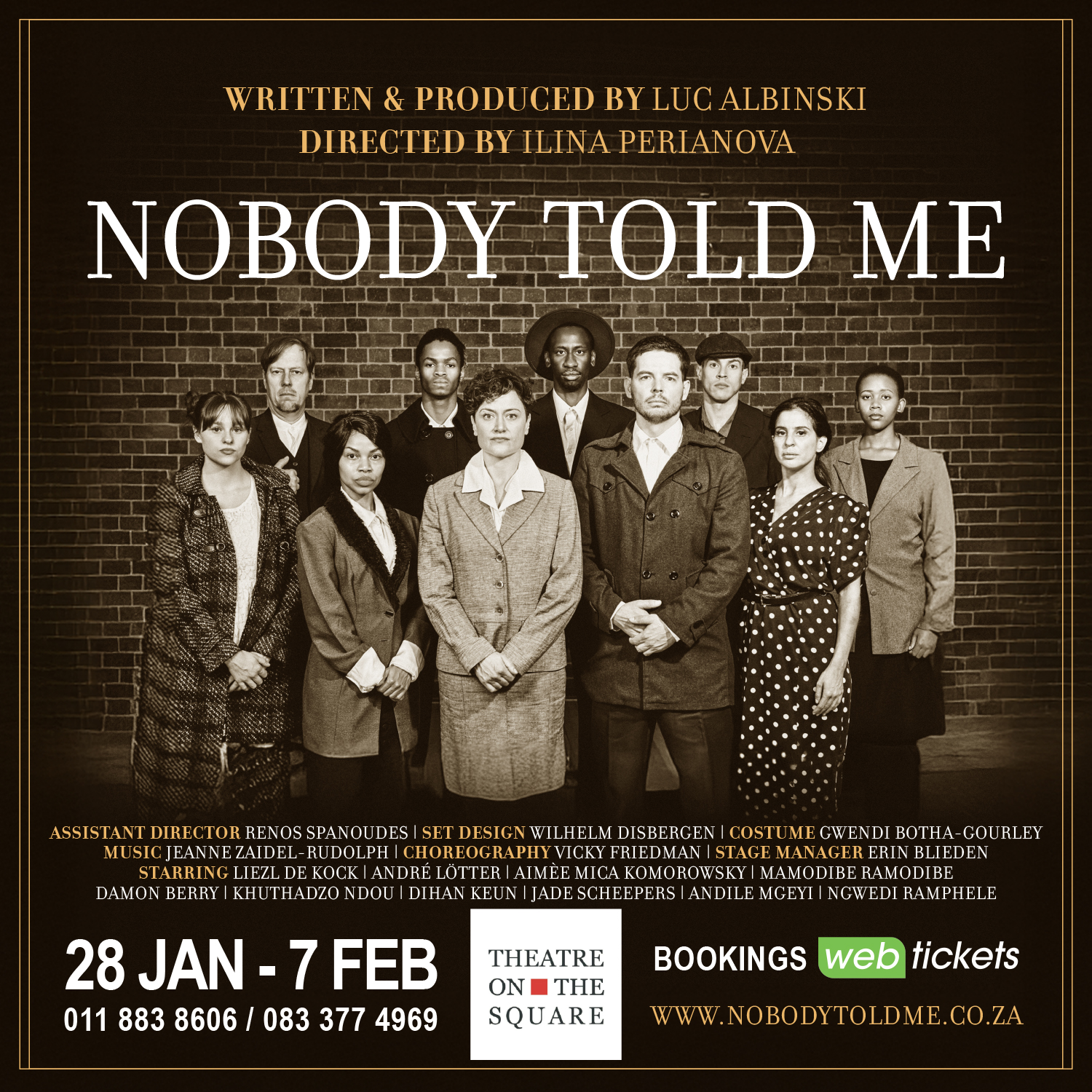 NOBODY TOLD ME, 'n nuwe drama deur Luc Albinski, open 28 Januarie 2026 by Theatre on the Square in Sandton. Terrance April het met Liezl de Kock gesels, wat die hoofrol in die verhoogwerk vertolk.