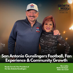 On the Growth Mode Podcast & Radio Show, host Nina Labbe sits down with Randy Carroll, Vice President of the San Antonio Gunslingers, to talk about the return of arena football to San Antonio and the excitement building around the upcoming season. Randy shares his journey from years behind the mic…