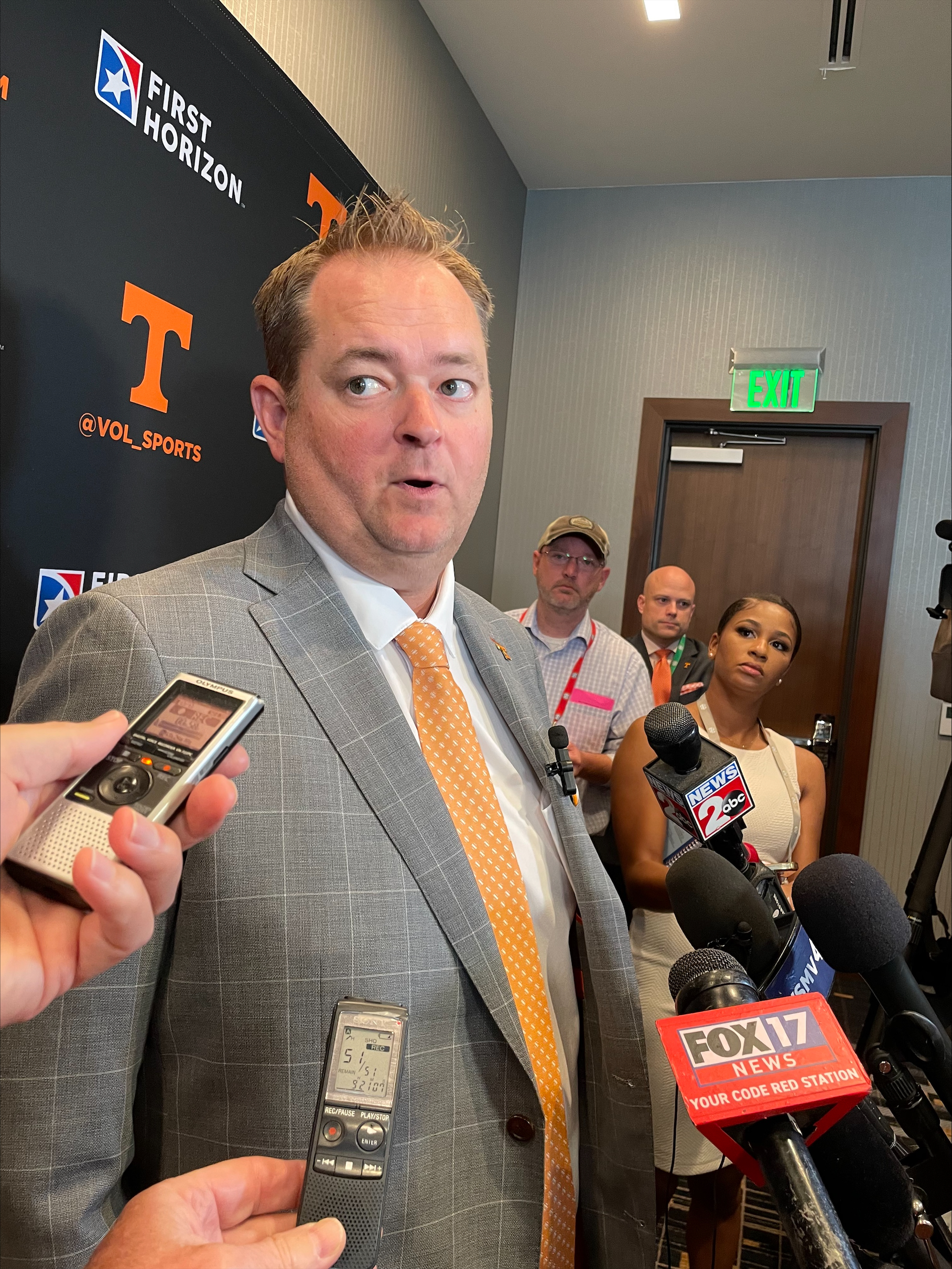 The Vols head football coach took questions from 99.1 The Sports Animal staff and reporters in the room of radio & TV reporters at SEC Football Media Days in Nashville.