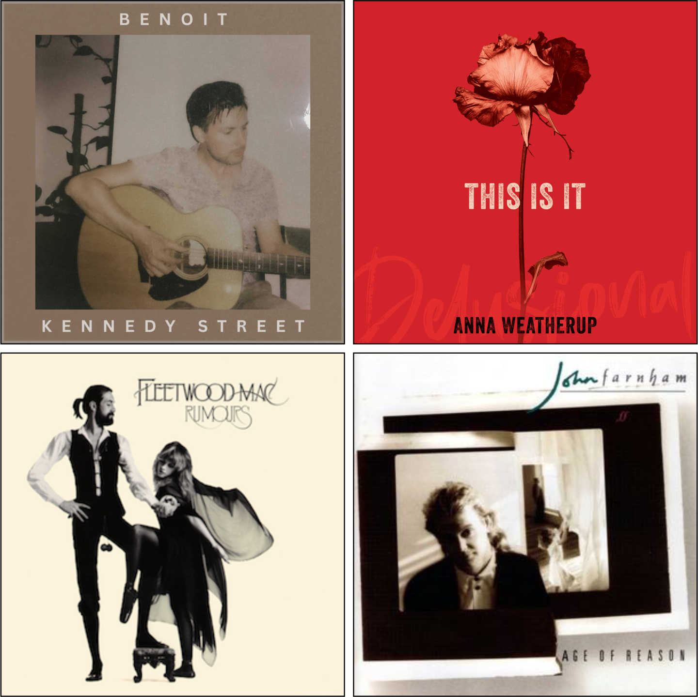 John Farnham - Age of Reason Little River Band - Playing To Win Peter Cupples - Blame It On The Weather DACY - tell me I'm wrong Brendan McMahon - The Rivers Edge Fleetwood Mac - Go Your Own Way Carpenters - Calling Occupants Of Interplanetary Craft Anna Weatherup - This Is It Steely Dan - Home At …