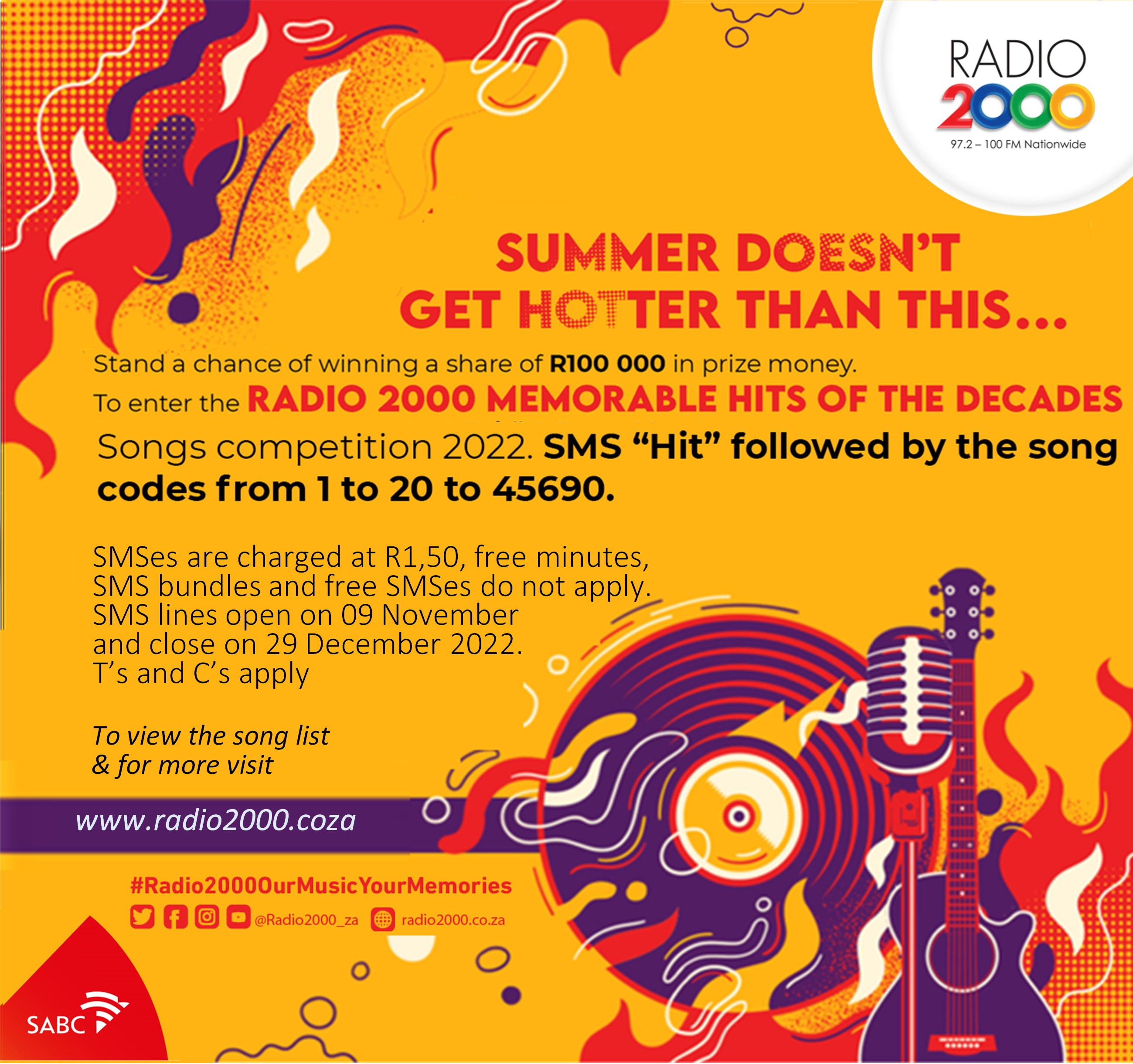 Radio second edition of the song competition is back. “Radio 2000 Memorable Hits of the Decades Competition 2022”; giving away R100 000.00 in prize money. #Radio2000ourmusicyourmemories