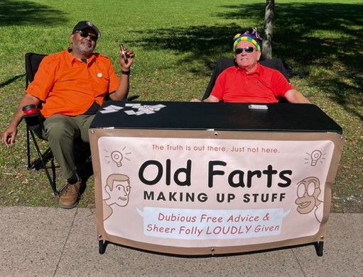 'Being a fart is a state of mind.' -Kevin Shotsberger and Razz Jenkins, Two "old farts" from Chicago handing out free advice in Georgia