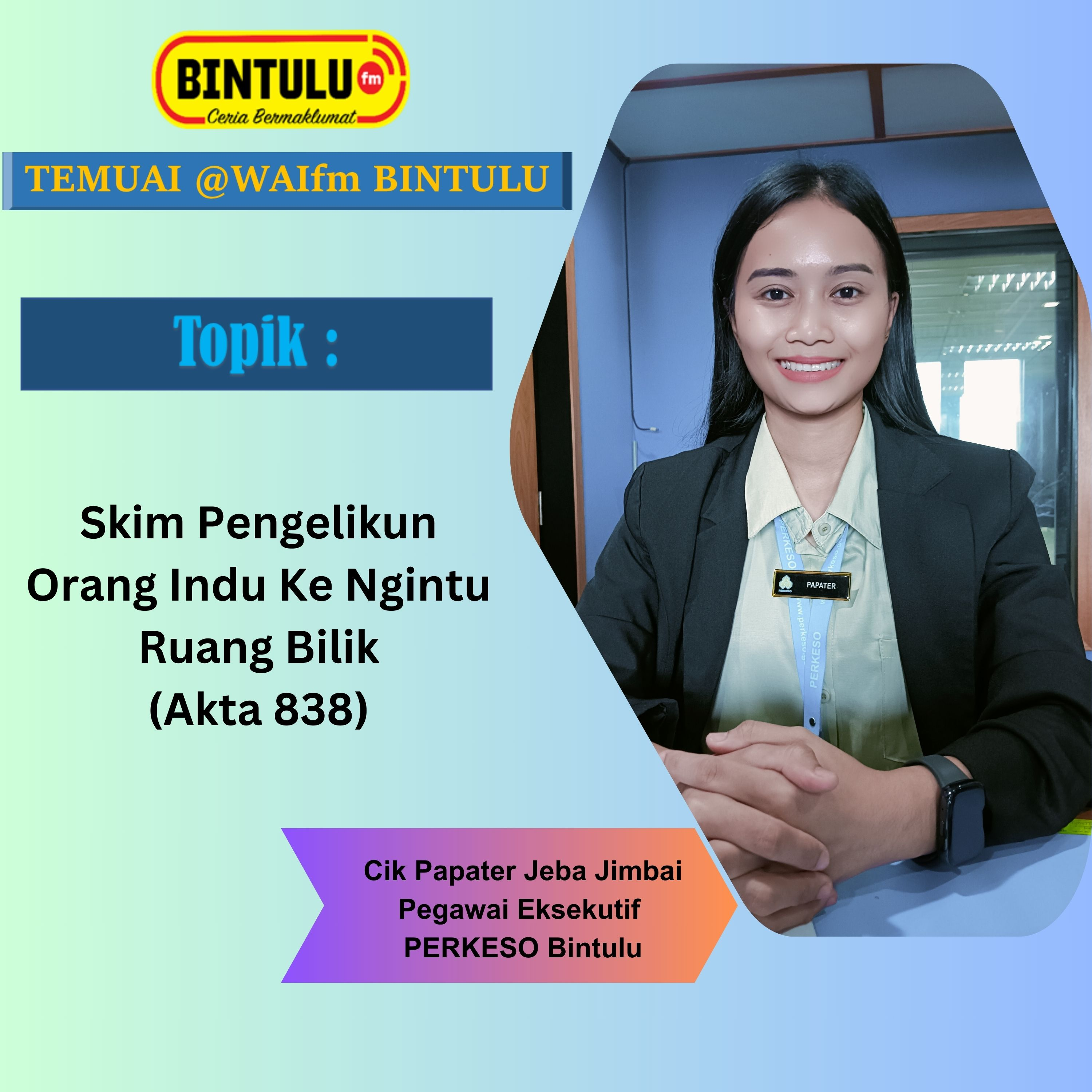 CIK PAPATER JEBA JIMBAI - PEGAWAI EKSEKUTIF PERKESO BINTULU (TAJUK :SKIM PENGELIKUN ORANG INDU KE NGINTU RUANG BILIK-AKTA 838)