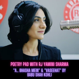 In this podcast series of Poetry Pad, RJ Yamini beautifully recites these poetries called "A.. Bhasha Mein" & "Vaseehat" by Babu Shah Kohli. If you want one of your poetries to be recited send them on Instagram @me.yamini or "RJ Yamini Sharma" on facebook.